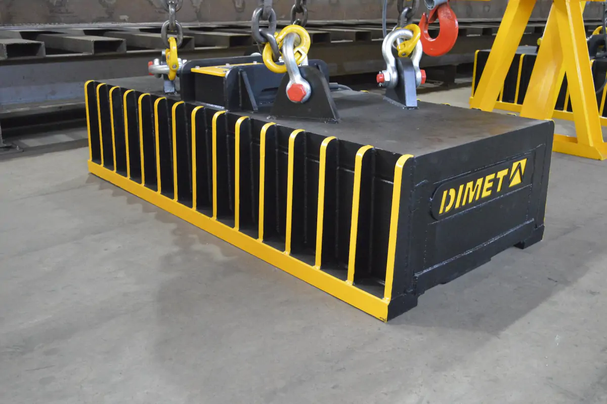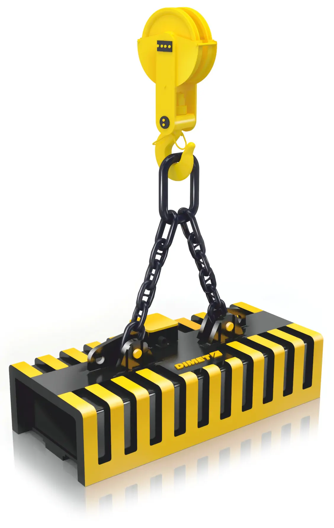 Серия прямоугольных электромагнитов DIMET ЭМГ с литым магнитопроводом для перегрузки заготовок, рельс, поковок. Улучшенные аналоги, выпускаемых в СССР, электромагнитов ПМ15, ПМ25, ПМ26. Возможно, изготовление в термостойком исполнении для работы с грузами при температуре до 650° С. Полюса электромагнитов могут быть наплавлены твердосплавными электродами. Это предотвращает преждевременный износ полюсов электромагнита и увеличивает срок его эксплуатации.