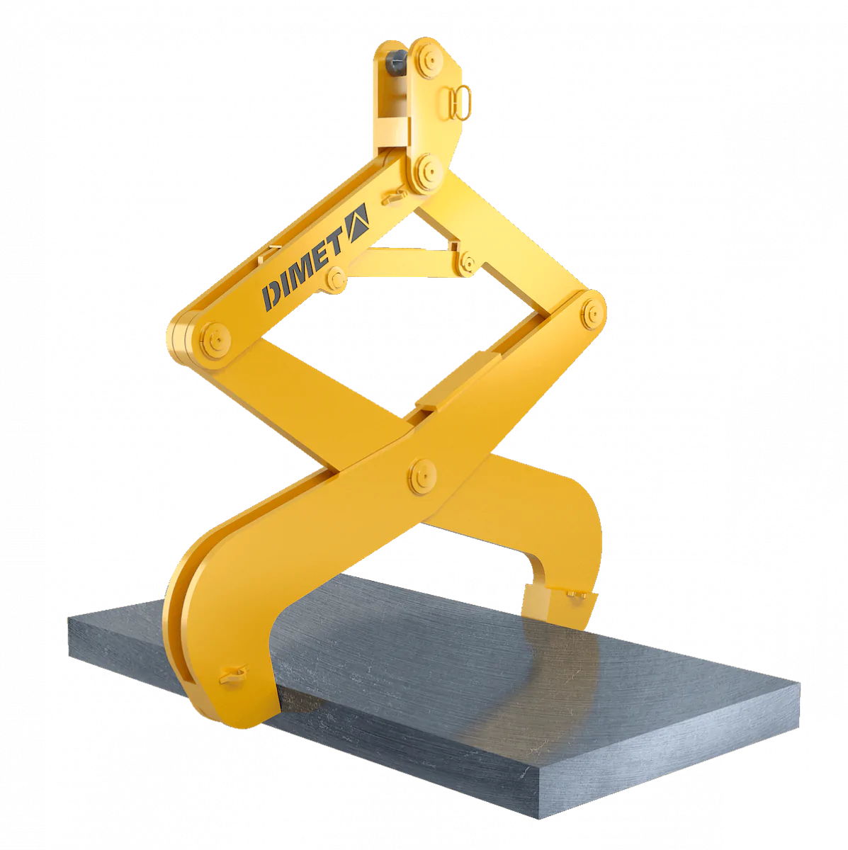 Данный тип клещевых захватов предназначен для транспортировки слябов. Мы разработали серию клещевых захватав в данном конструктиве способную транспортировать груз массой 13,5, 15, 20 т. Захваты оснащены автоматической защелкой, которая позволяет исключить нахождение человека в опасной зоне проведения погрузо-разгрузочных работ. Захват предназначен для работы с грузом температура которого составляет не более 750 °С.