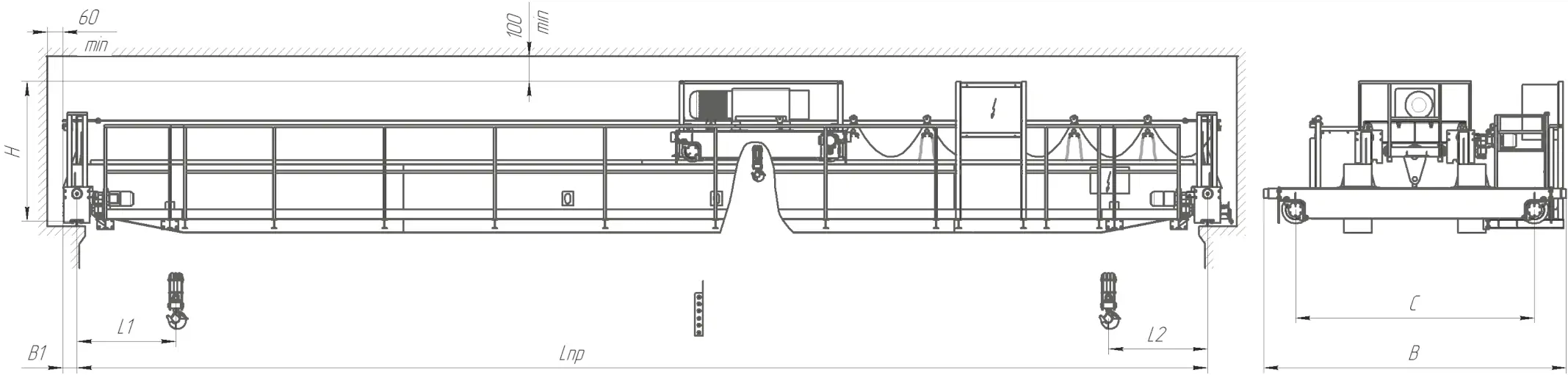 - Установки и выверки ходовых колес моста и тележки;
