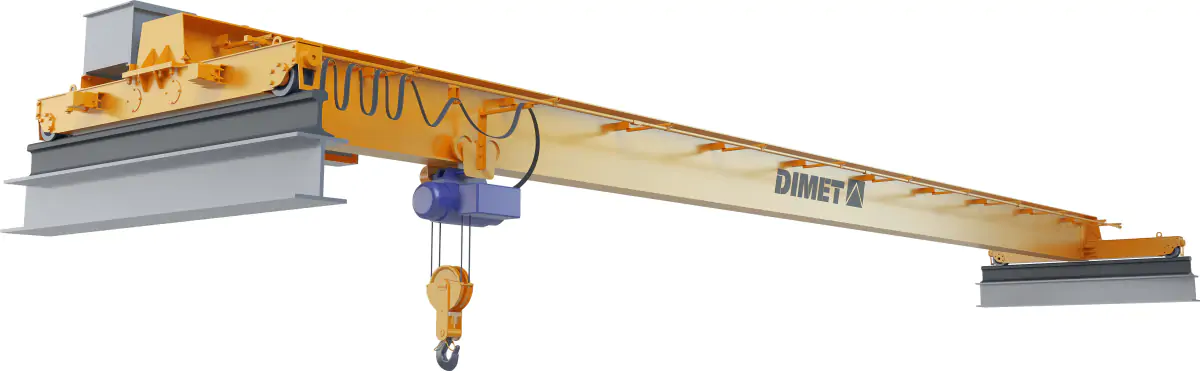 Краны мостовые однобалочные опорные электрические DIMET имеют продольную ездовую балку. Материал пролетной балки – низколегированная конструкционная сталь 09Г2С по ГОСТ 19281.