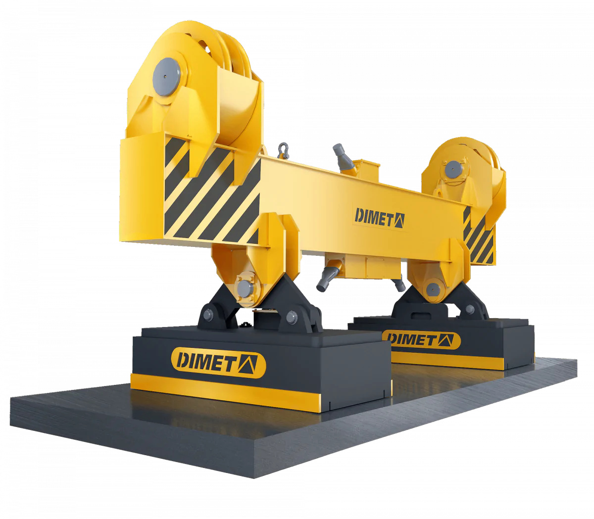 Магнитные траверсы DIMET рекомендуется использовать в комплексе с электрическими и электропостоянными грузоподъемными магнитами DIMET серий: СЛЯБ-Т , ИМГ