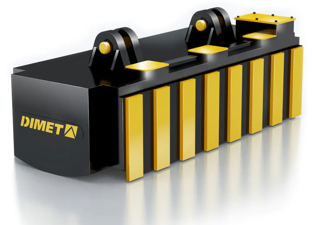 Специальная серия электромагнитов DIMET ЭМГМ для перегрузки и мягкого кантования слябов. Благодаря специальной конструкции и форме полюсов позволяют плавно перевернуть сляб без падения. Возможно, изготовление в термостойком исполнении для работы с грузами при температуре до 650°С.
