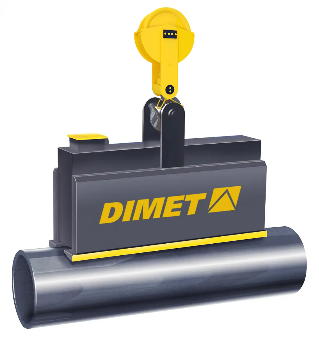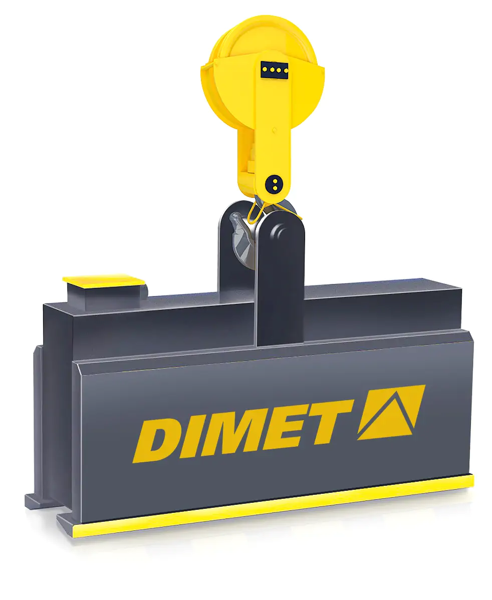 Специальная серия электромагнитов DIMET ЭМГТ для перегрузки труб большого диаметра. Конструкция электромагнита разработана с учетом особенностей транспортируемого груза и специальные полюсные накладки для увеличения площади контакта с грузом. Данное решение способствует увеличению производительности при работе с электромагнитами серии ЭМГТ. Данный вид электромагнитов преимущественно используется в конструкции траверс. Возможно, изготовление для работы в подводных условиях и в термостойком исполнении для работы с грузами при температуре до 650° С.