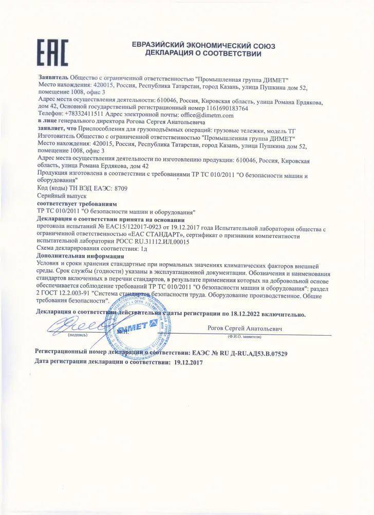 Платформа тележки может быть оборудована следующими приспособлениями: