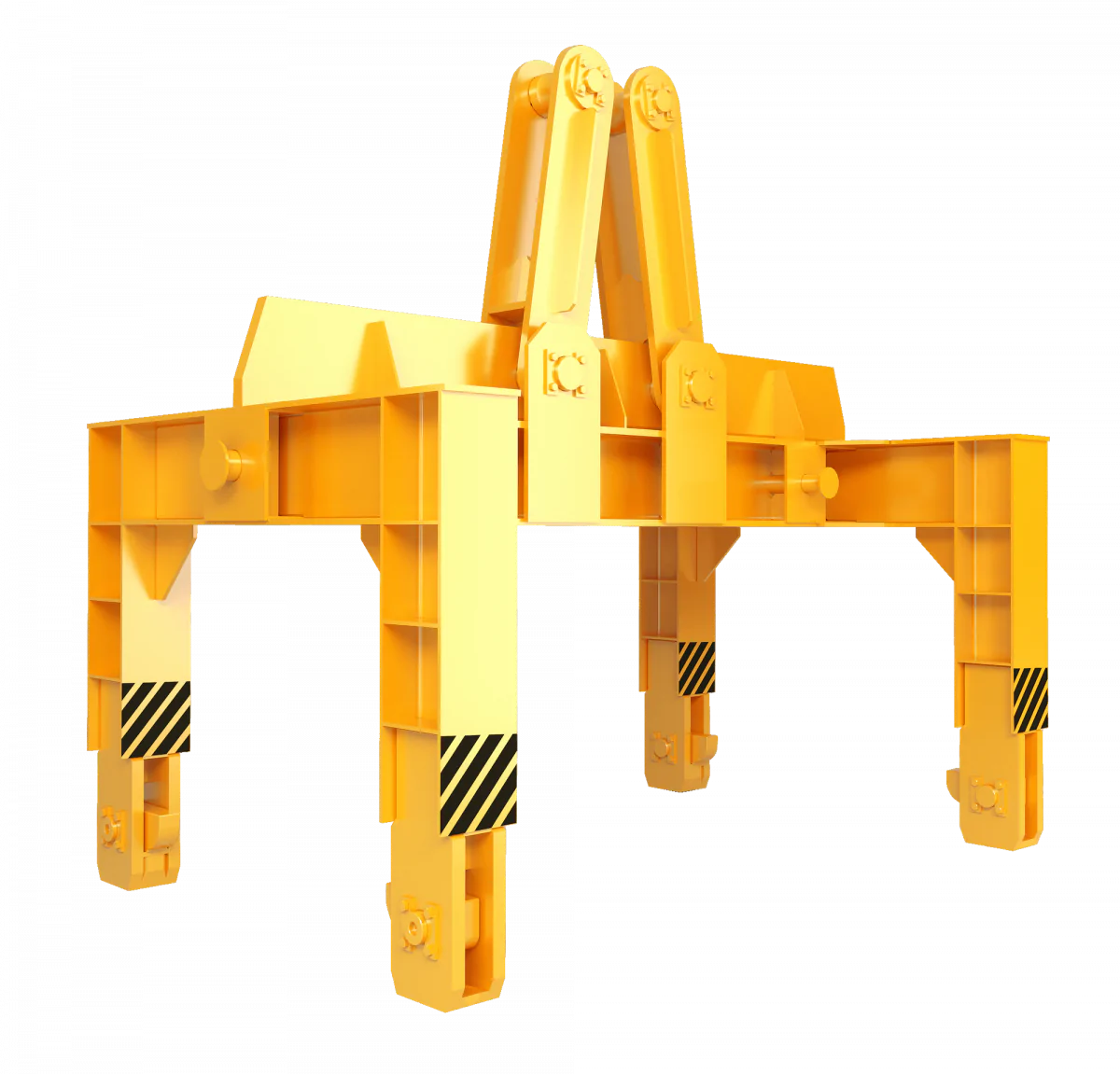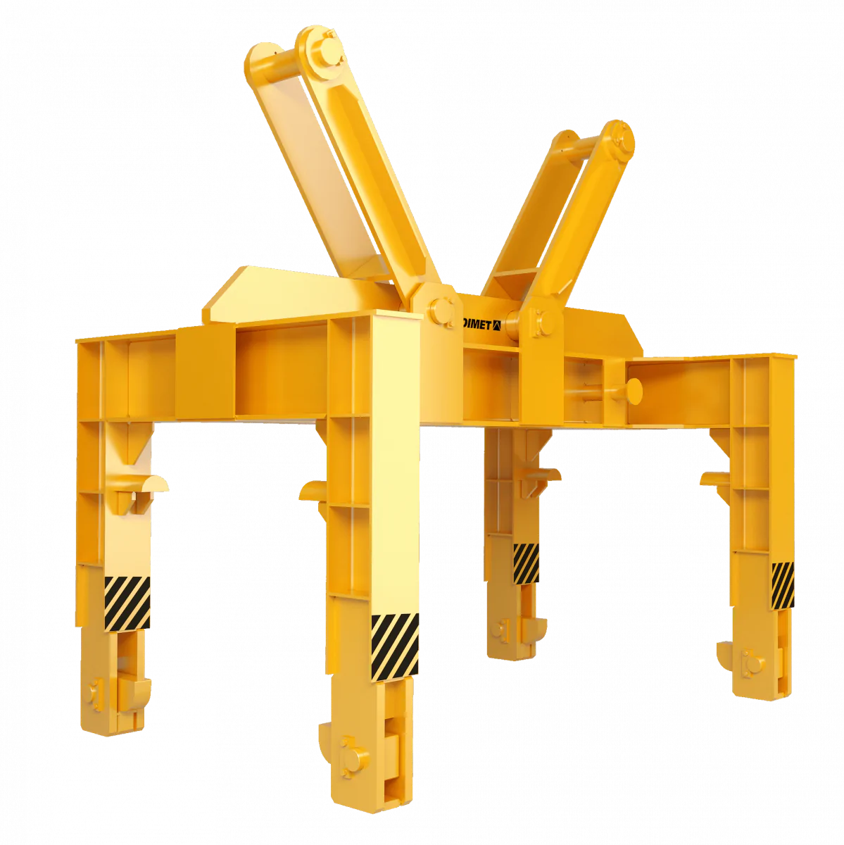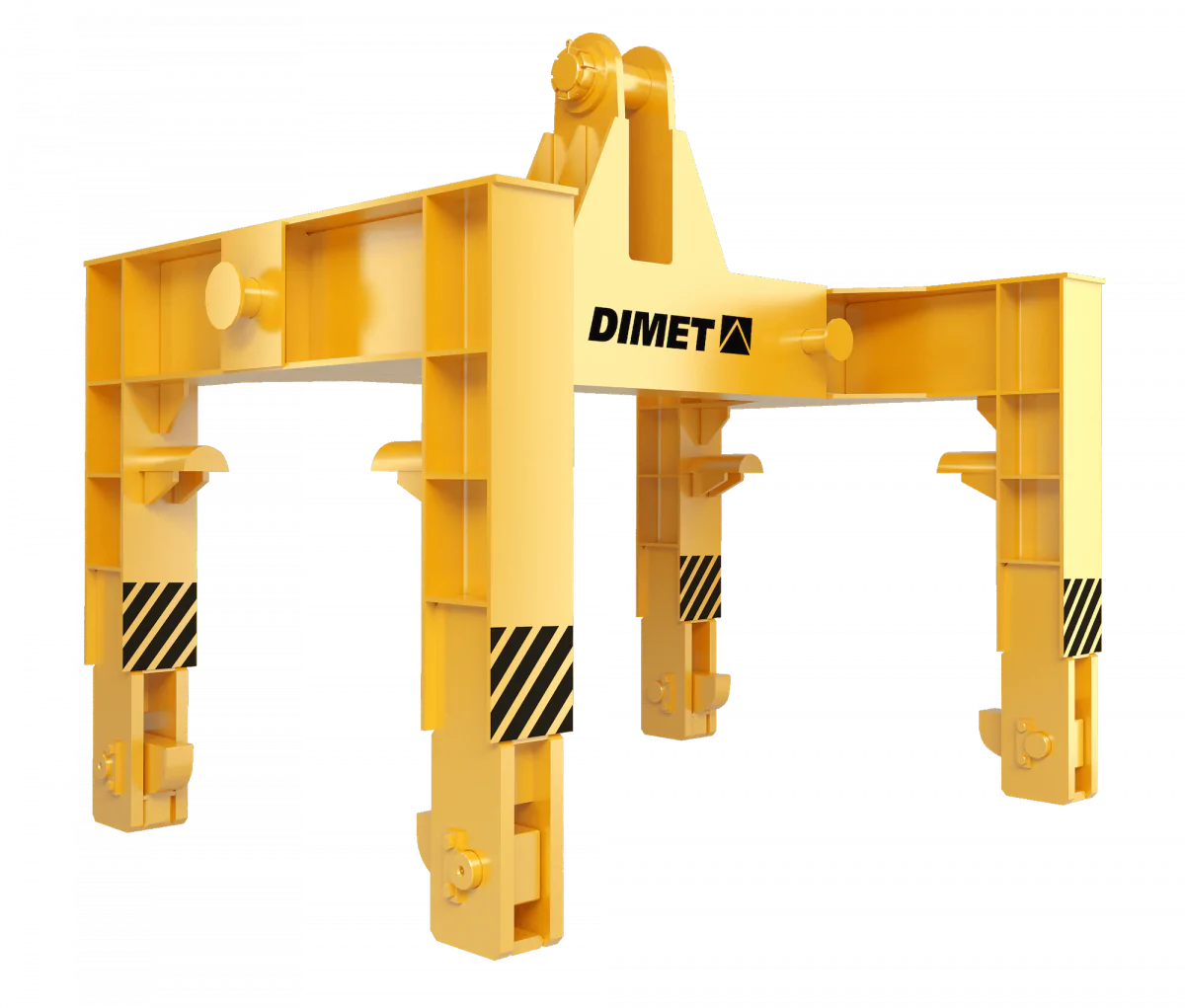 Пространственная траверса DIMET для транспортировки валков стана состоит из сварного корпуса с щеками для подвеса груза, которые вращаются на оси. В зависимости грузоподъемного крана, траверсы может быть оснащена подвесом под однорогий, либо двурогий крюк.